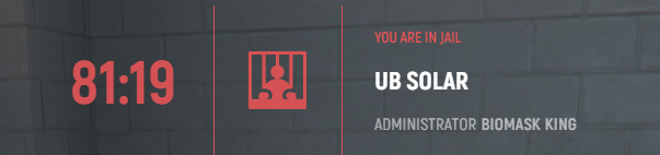 i got ub solar that does not make sense Admin Biomask King put me in jail for 120 min and mute me while i try to find out why it was ub solar